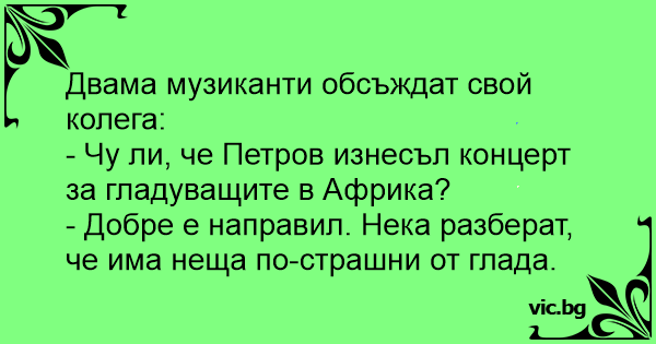 - Чу ли, че Петров изнесъл концерт за гладуващите в Африка?