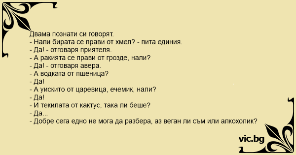 • Вицове от Facebook от нашата страница https://www.facebook.com/www.vic.bg