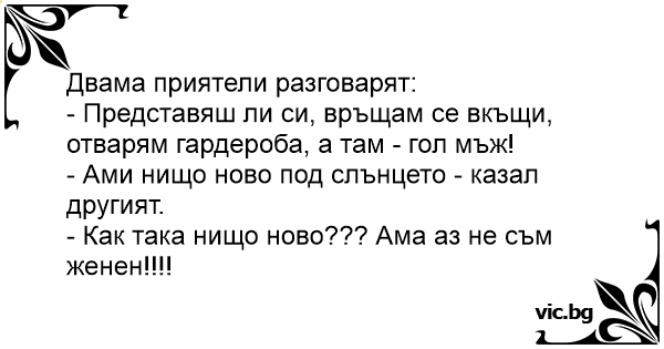 • Вицове от Facebook от нашата страница https://www.facebook.com/www.vic.bg