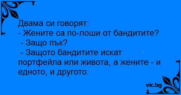 - Защото бандитите искат портфейла или живота, а жените - и едното, и другото.