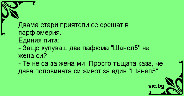 - Защо купуваш два пафюма "Шанел5" на жена си?