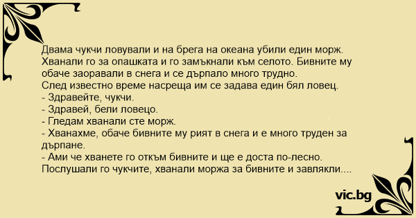 Послушали го чукчите, хванали моржа за бивните и завлякли.
