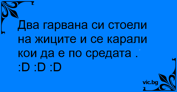 Два гарвана си стоели на жиците и се карали кои да е по средата .