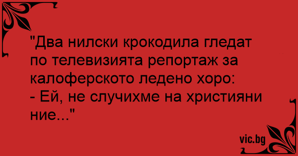"Два нилски крокодила гледат по телевизията репортаж за калоферското ледено хоро: