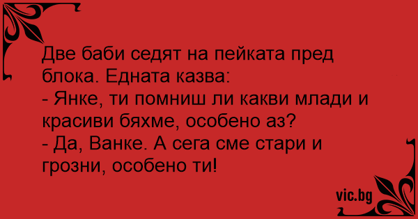 - Да, Ванке. А сега сме стари и грозни, особено ти!