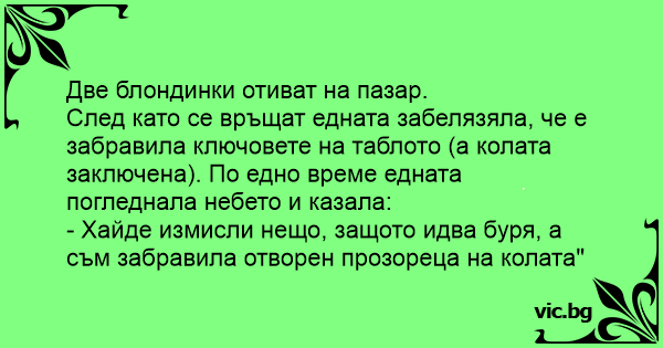- Хайде измисли нещо, защото идва буря, а съм забравила отворен прозореца на колата"