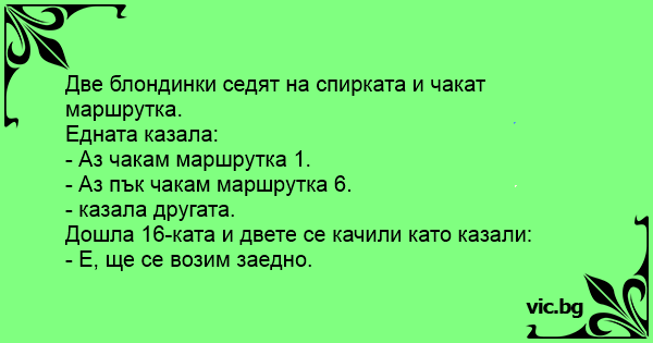 Две блондинки седят на спирката и чакат маршрутка.