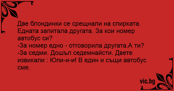 Две блондинки се срещнали на спирката.