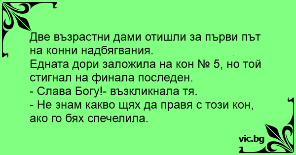 Две възрастни дами отишли за първи път на конни надбягвания.