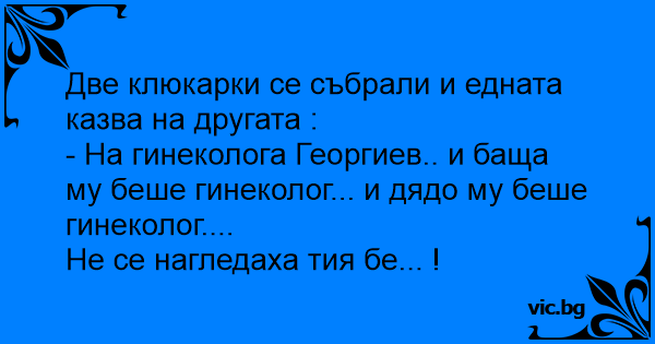 - На гинеколога Георгиев.. и баща му беше гинеколог... и дядо му беше гинеколог....