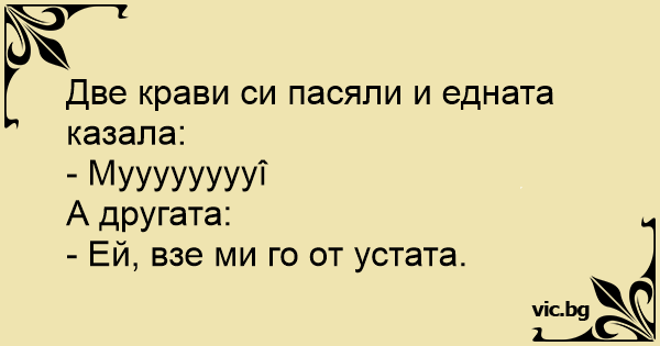 Две крави си пасяли и едната казала: