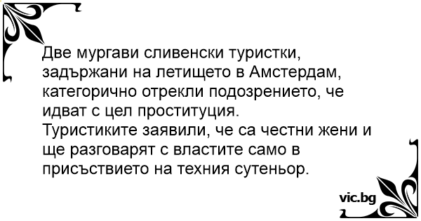 Две мургави сливенски туристки, задържани на летището в Амстердам, категорично отрекли подозрението, че идват с цел проституция.