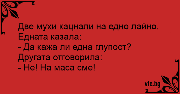 Две мухи кацнали на едно лaйнo.
