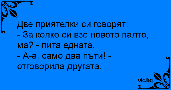 - За колко си взе новото палто, ма? - пита едната.