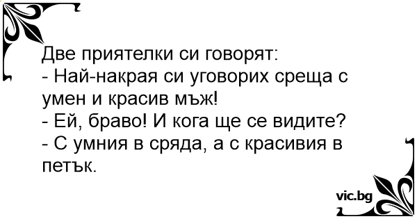 - С умния в сряда, а с красивия в петък.