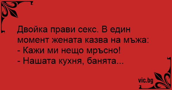 Двойка прави cekc. В един момент жената казва на мъжа: