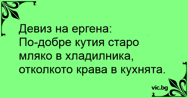По-добре кутия старо мляко в хладилника, отколкото крава в кухнята.