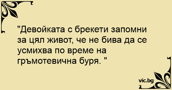 "Девойката с брекети запомни за цял живот, че не бива да се усмихва по време на гръмотевична буря. "