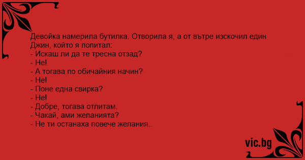 • Вицове от Facebook от нашата страница https://www.facebook.com/www.vic.bg