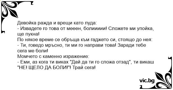 • Вицове от Facebook от нашата страница https://www.facebook.com/www.vic.bg