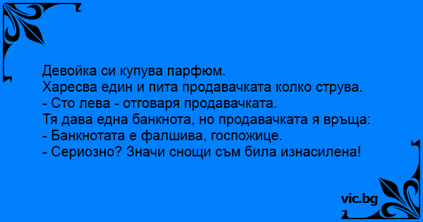 • Вицове от Facebook от нашата страница https://www.facebook.com/www.vic.bg