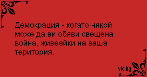 Демокрация - когато някой може да ви обяви свещена война, живеейки на ваша територия.