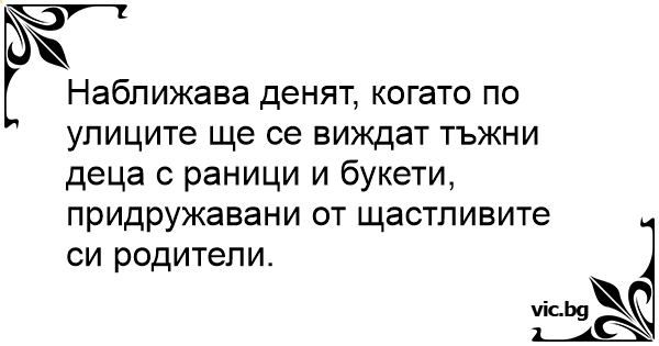 Наближава денят, когато по улиците ще се виждат тъжни деца с раници и букети, придружавани от щастливите си родители.