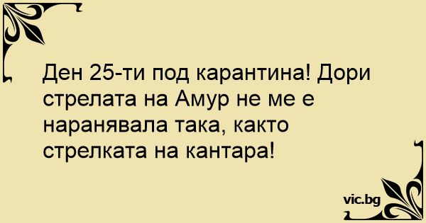 Ден 25-ти под карантина! Дори стрелата на Амур не ме е наранявала така, както стрелката на кантара!
