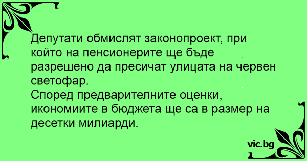 Депутати обмислят законопроект, при който на пенсионерите ще бъде разрешено да пресичат улицата на червен светофар.