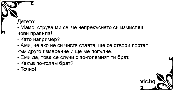 • Вицове от Facebook от нашата страница https://www.facebook.com/www.vic.bg