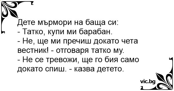 - Не, ще ми пречиш докато чета вестник! - отговаря татко му.