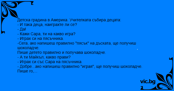 - Добре...ако напишеш правилно "играя", ще получиш шоколадче.
