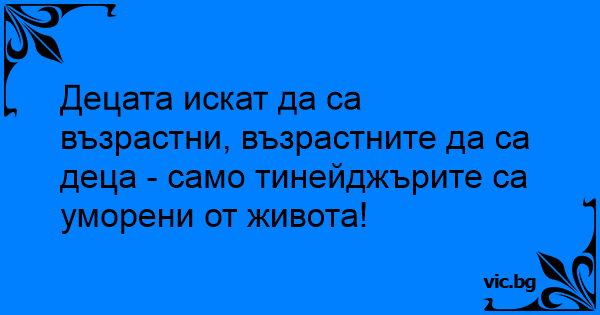 Децата искат да са възрастни, възрастните да са деца - само тинейджърите са уморени от живота!