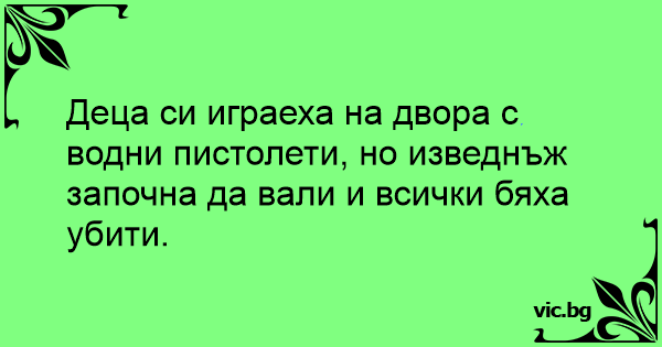 Деца си играеха на двора с водни пистолети, но изведнъж започна да вали и всички бяха убити.