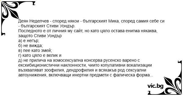 Последното е от личния му сайт, но като цяло остава енигма някаква, защото Стиви Уондър