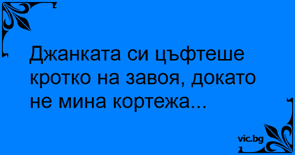Джанката си цъфтеше кротко на завоя, докато не мина кортежа...