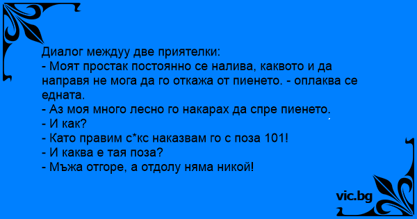 • Вицове от Facebook от нашата страница https://www.facebook.com/www.vic.bg
