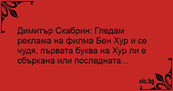 Димитър Скабрин: Гледам реклама на филма Бен Хур и се чудя, първата буква на Хур ли е сбъркана или последната...