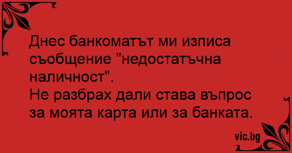 Днес банкоматът ми изписа съобщение "недостатъчна наличност".