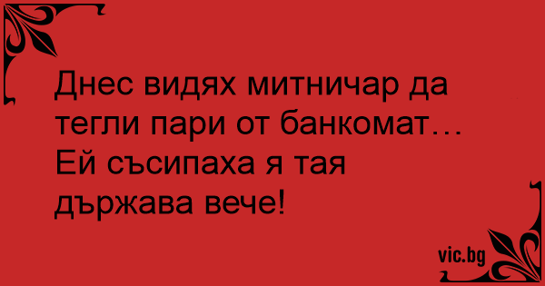Днес видях митничар да тегли пари от банкомат… Ей съсипаха я тая държава вече!