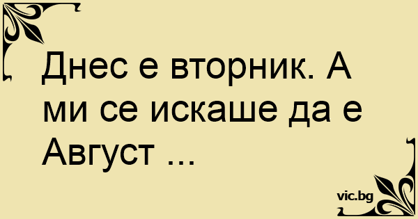 Днес е вторник. А ми се искаше да е Август ...