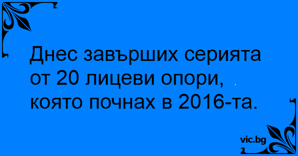 Днес завърших серията от 20 лицеви опори, която почнах в 2016-та.