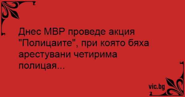Днес МВР проведе акция "Полицаите", при която бяха арестувани четирима полицая...