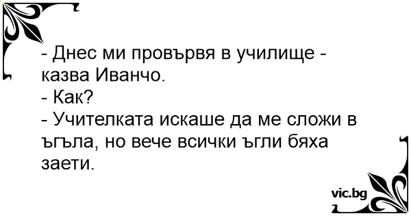 - Учителката искаше да ме сложи в ъгъла, но вече всички ъгли бяха заети.