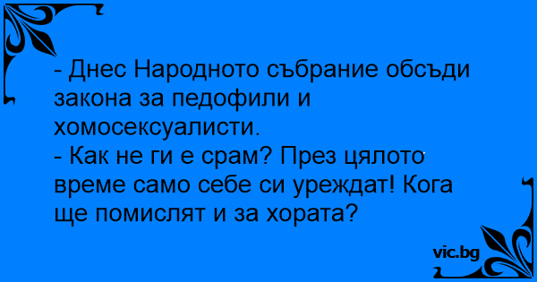 - Днес Народното събрание обсъди закона за педофили и хomocekcуaлиctи.