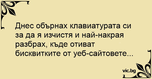 Днес обърнах клавиатурата си за да я изчистя и най-накрая разбрах, къде отиват бисквитките от уеб-сайтовете...