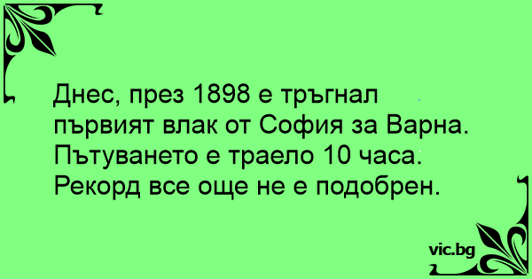 Днес, през 1898 е тръгнал първият влак от София за Варна. Пътуването е траело 10 часа.