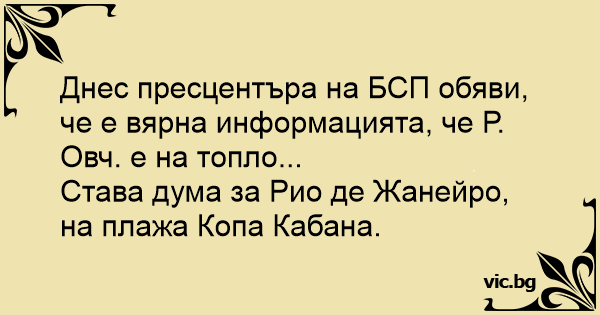 Днес пресцентъра на БСП обяви, че е вярна информацията, че Р. Овч. е на топло...