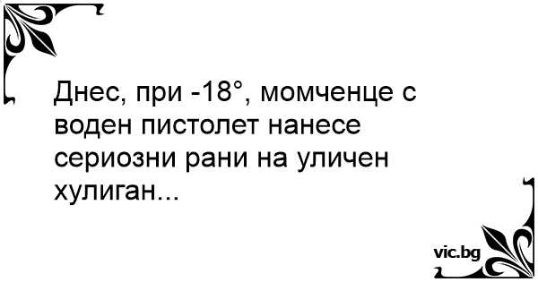 Днес, при -18°, момченце с воден пистолет нанесе сериозни рани на уличен хулиган...