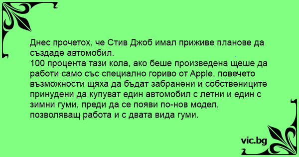 Днес прочетох, че Стив Джоб имал приживе планове да създаде автомобил.